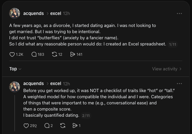 You’re probably here because you saw my post on Threads about how I created an Excel spreadsheet when I started dating again after my divorce.